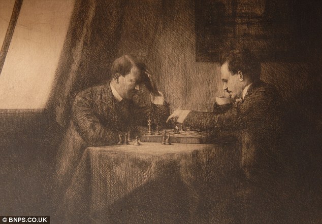 I kid you not. This is meant to be a sketch of Hitler and Lenin playing chess.