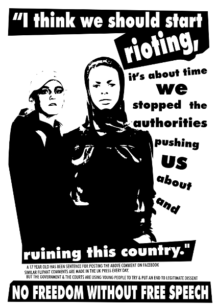 The Government are now overseeing a policy of prosecuting users of social media sites in a hope that this will create fear amongst other users; silence the voice of the dissedents. If the measures are not a knee jerk reaction then the alternative is more frightening; the options being, kicked in the closed mouth or smiling with no teeth! Freedom of speech is nearly always the first right to be suppressed by any authority that doen’t reflect the society it is meant to represent. If the views are by a minority, let them be aired (see previous blogs) and they will fall on deaf ears.