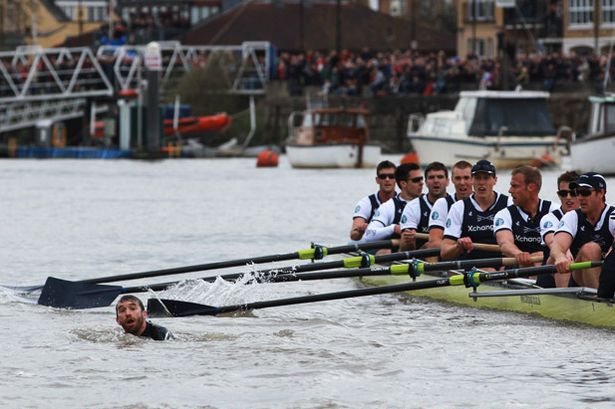 The famous boat race between the two universities that perpetuate the class division in this country was forced to stop after a man was seen swimming between the boats. Fucking Excellent, this is probably the best funniest news all day, how dare the rotter ruin their spiffing jaunt on the river – does anybody really care about this event at all apart from the alumni from Oxbridge, oh and the BBC because it is the only sporting event they show live – even Sky don’t want it.