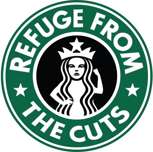 Is your local rape crisis centre being closed? Then why not turn your local Starbucks into a refuge? Bring your kids, because 50% of people living in refuges are children. Housing benefit cut? Bring your sleeping bags. Are you working less hours because subsidised childcare is a thing of the past? You could set up a Starbucks crèche.